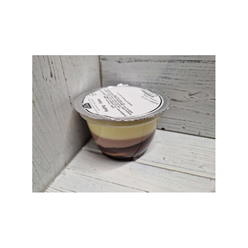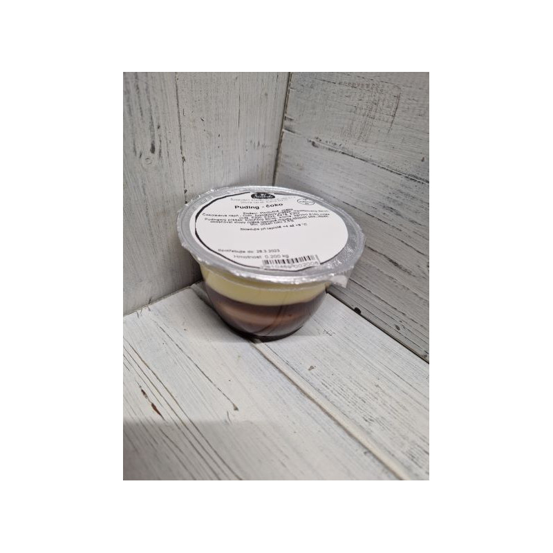 Vanilkovo-čokoládový puding obohacený čokoládovým krémem.