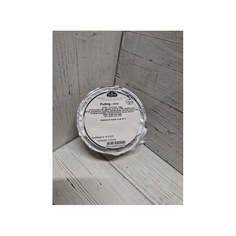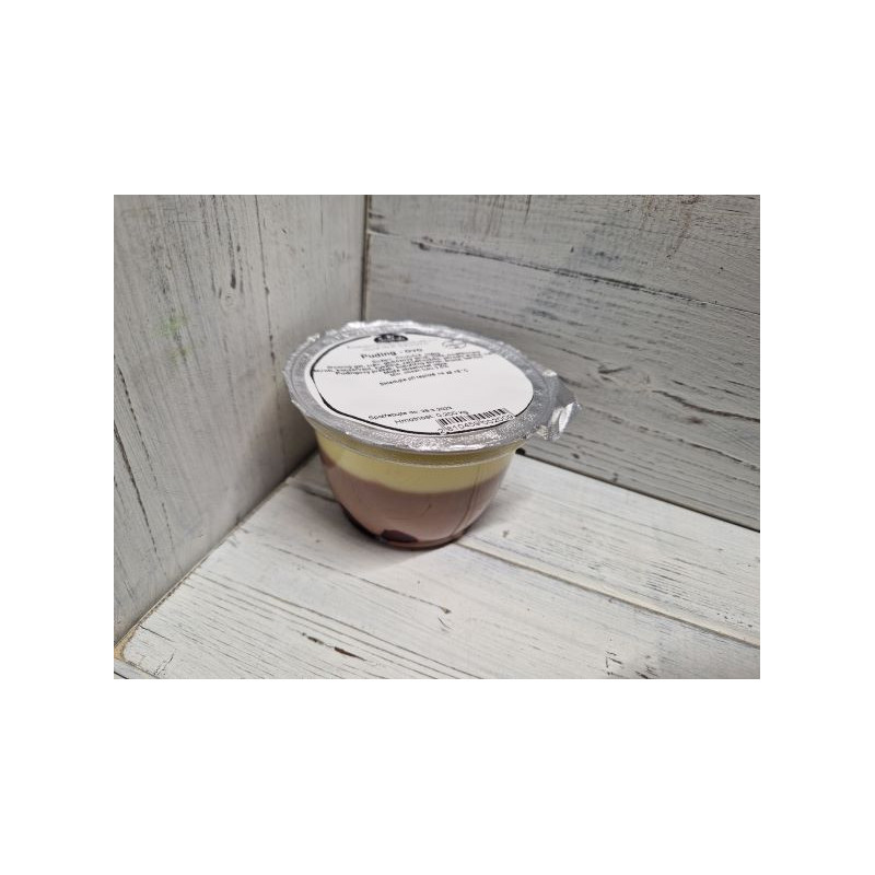 Vanilkovo-čokoládový puding obohacený čokoládovým krémem.