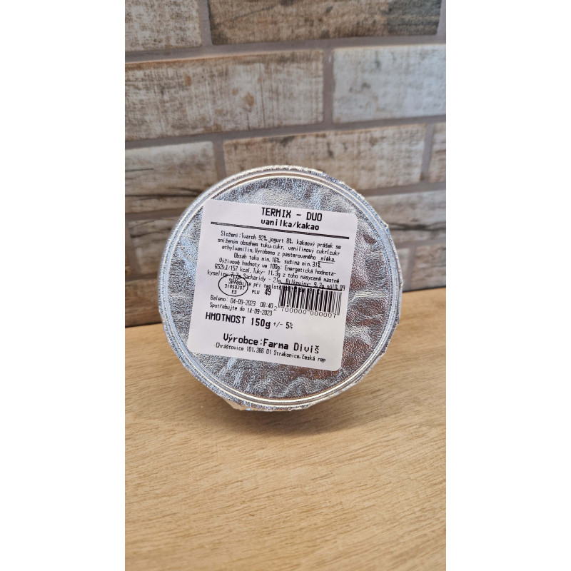 Lahodný slazený tvarohový dezert s příchutí čokolády z farmy Diviš.