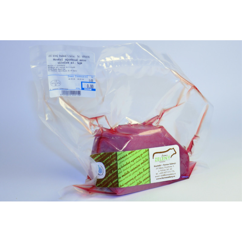 Hovězí zadní - váleček je velmi jemně prorostlé tukovými žilkami Hovězí váleček se hodí k pozvolnému pečení nebo dušení vcelku, k přípravě svíčkové či štěpánské pečeně. Dále je vhodné k přípravě tatarského bifteku