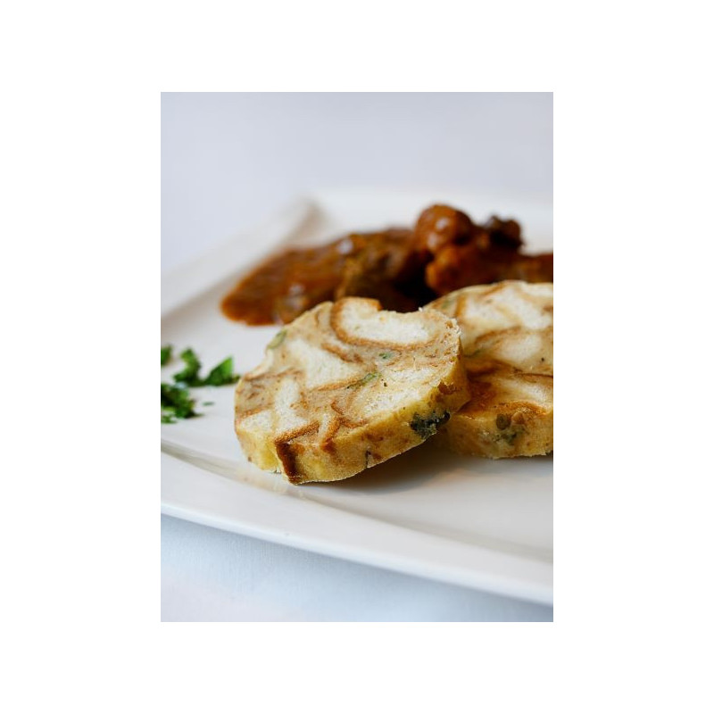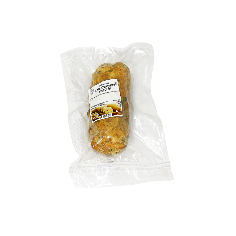 Knedlík je charakteristický mozaikou z kostek z kvalitního pečiva upečeného do zlatova a petrželové natě. Kvalitní pečivo je základ pro charakteristickou strukturu a barvu karlovarského knedlíku. Používáme výhradně čerstvé suroviny regionálních výrobců a dodavatelů. Kvalitní ruční zpracování a následné vaření tradičními postupy dodává našemu knedlíku exkluzivní chuťové vlastnosti.