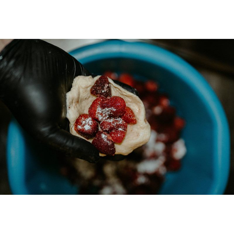 Složení – pšeničná mouka (lepek), mražené ovoce, sůl, vejce, voda, droždí. Může obsahovat stopy sezamu.