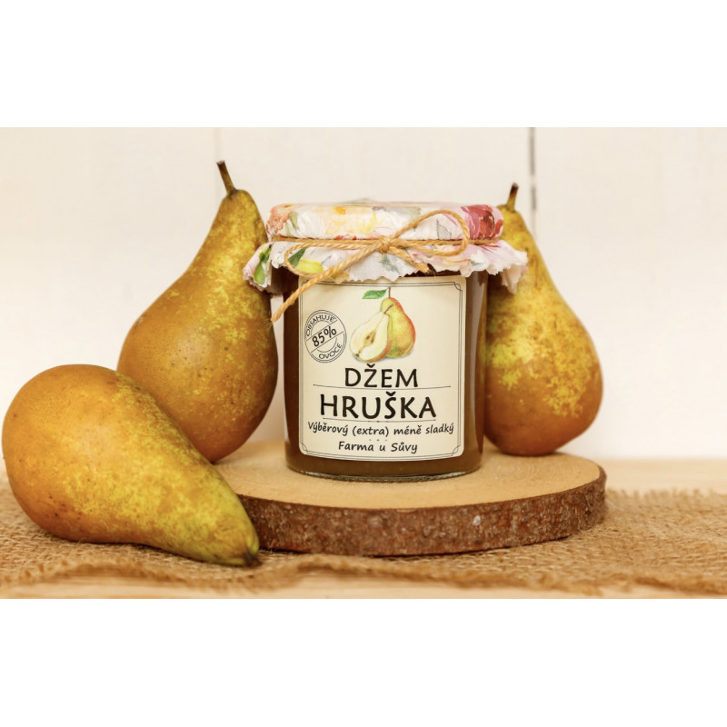 Hruškový džem – výběrový (extra), méně sladký je vyroben z kvalitních, pečlivě vybraných hrušek s vysokým podílem ovoce. Díky obsahu 85 % ovoce si zachovává plnou, přirozeně sladkou chuť bez přehnané cukernatosti.
