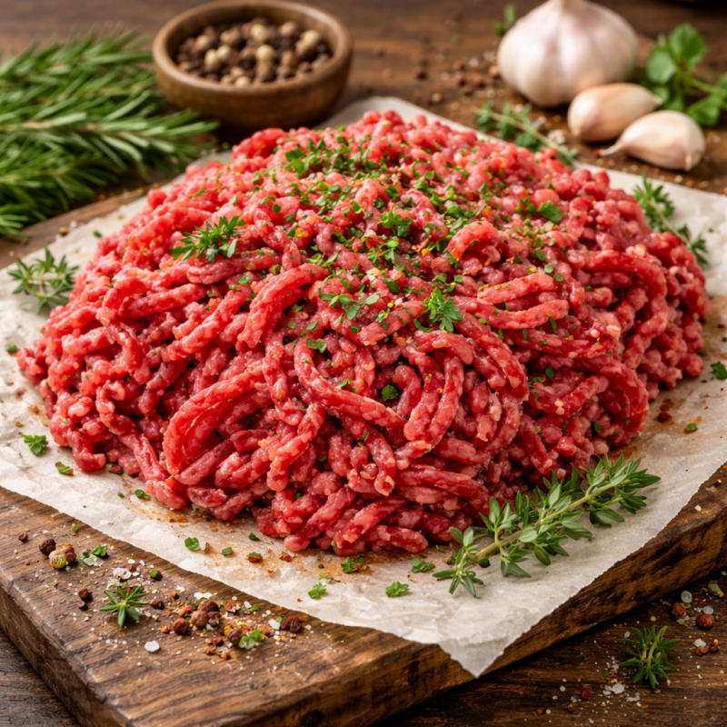 Hovězí mleté maso je připravováno z čerstvého hovězího masa bez přidaných náhražek a bez konzervantů. Díky vyváženému poměru masa a přirozeného tuku je šťavnaté, chutné a univerzální pro široké využití v kuchyni.