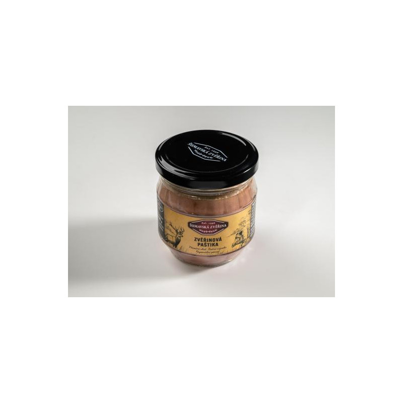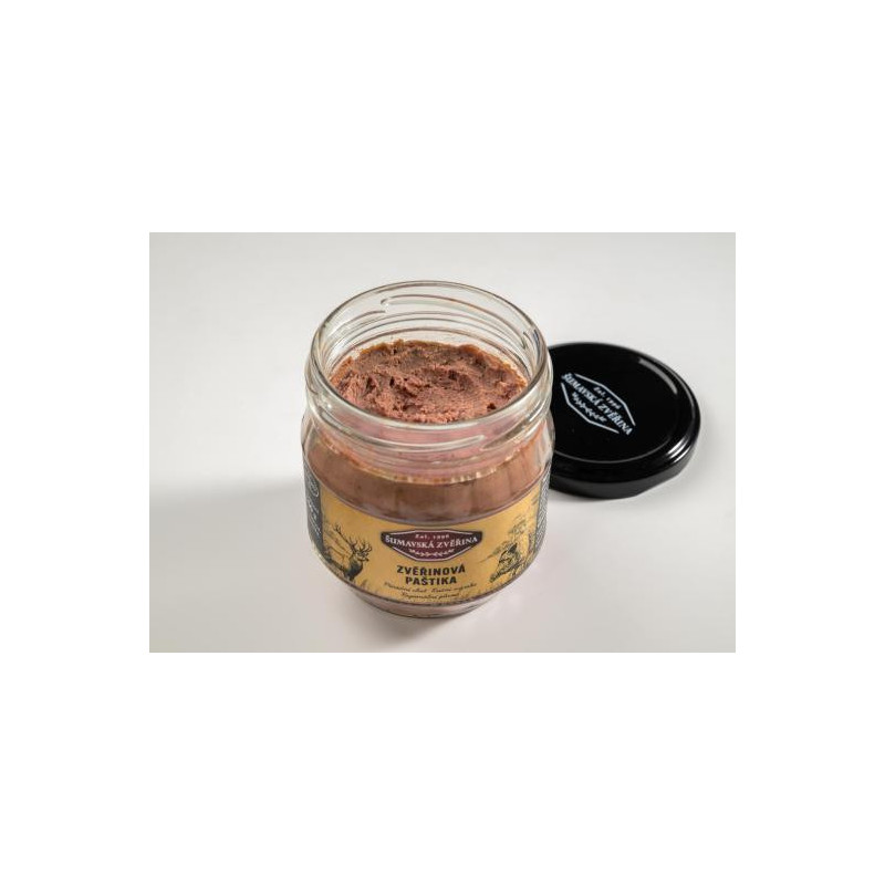 Unikátní zvěřinová paštika z kvalitních zvěřinových jater, srdíček a vepřového výřezu.
