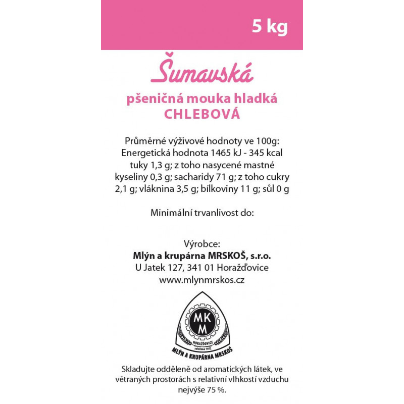 Šumavská pšeničná mouka hladká z rodinného mlýna Mrskoš oceněná značkou Šumava originální produkt.