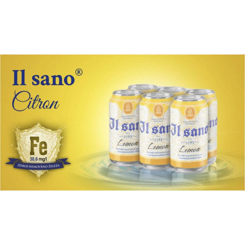 Il sano Citron – výhodné balení 6×0,33 l plechovek osvěžující minerální vody s citronovou příchutí.