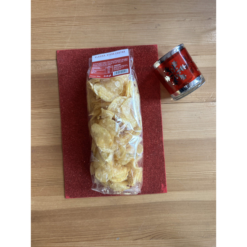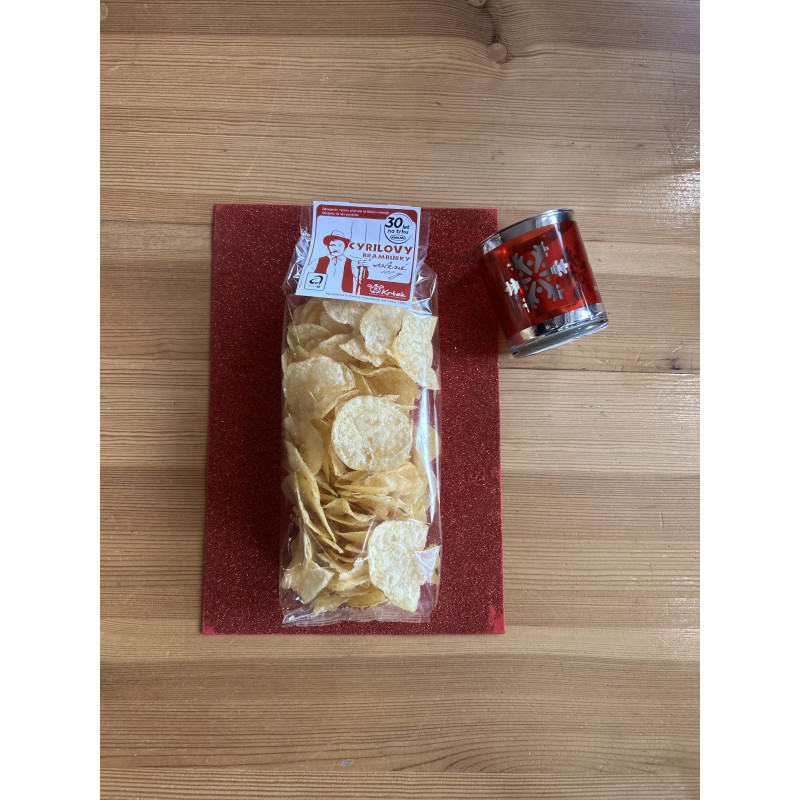 Cyrilovy brambůrky solené – klasické smažené bramborové lupínky z brambor, řepkového oleje a soli. Bez barviv a dochucovadel.