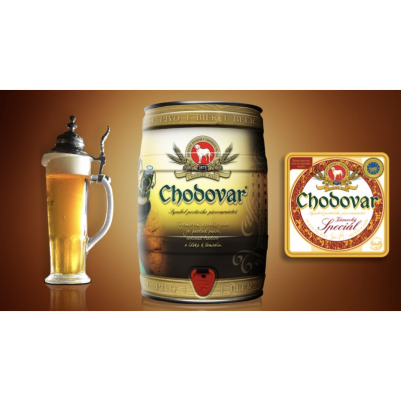 Pětilitrový soudek Chodovar 13° Zámecký Speciál – silnější světlý ležák s plnou chutí a výrazným chmelovým charakterem.