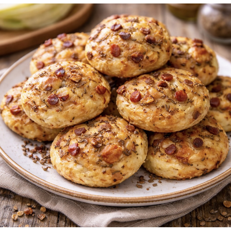 Tradiční zelňáky – slané pečivo s kysaným zelím a kořením. Křupavé, voňavé a ideální jako rychlá svačina.