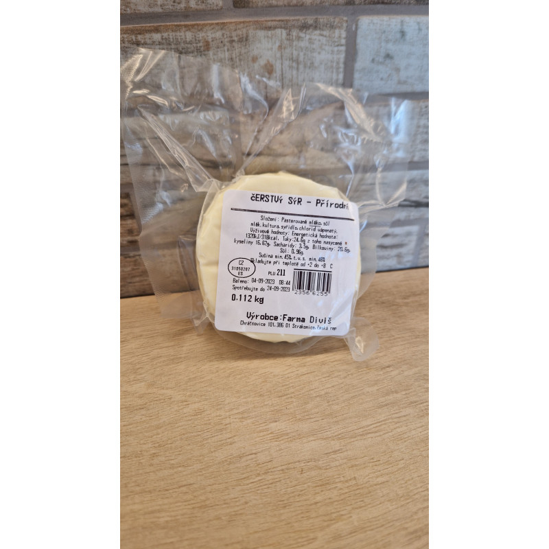 Čerstvý sýr přírodní z rodinné farmy Diviš. Balení cca 100 g.