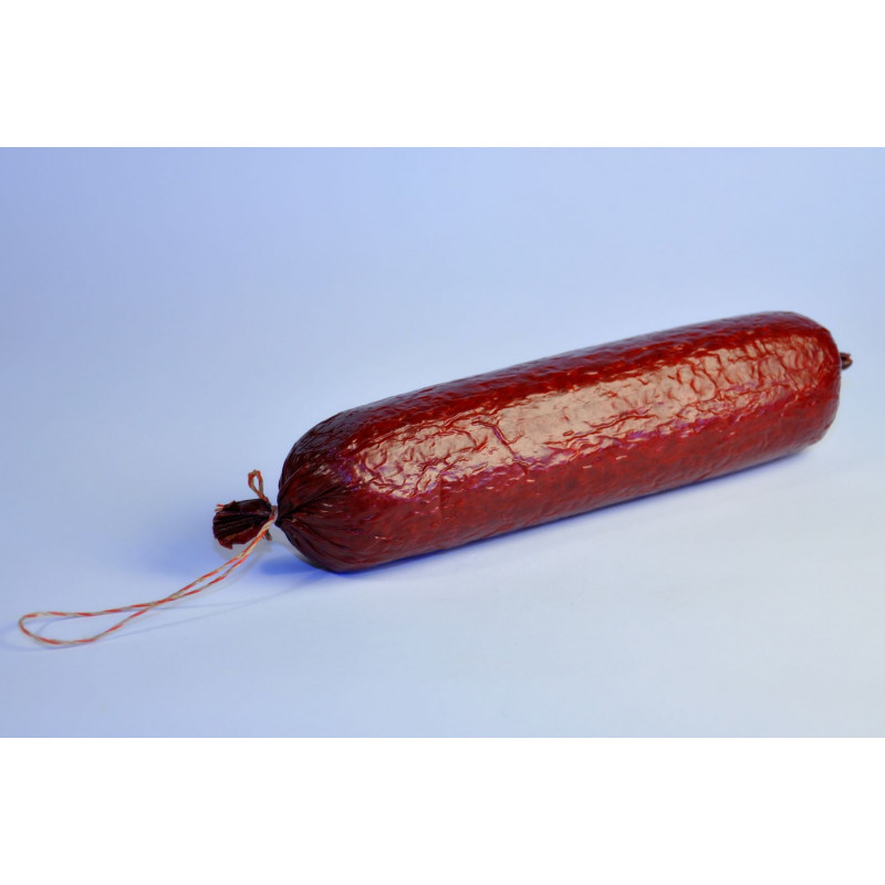 Kvalitní jelení zvěřina s přídavkem vepřového masa pro neodolatelnou šťavnatost. Použity jsou jen ty nejkvalitnější suroviny a přírodní vepřová střívka.