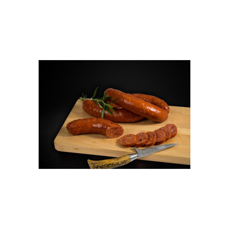 Kvalitní jelení zvěřina s přídavkem vepřového masa pro neodolatelnou šťavnatost. Použity jsou jen ty nejkvalitnější suroviny a přírodní vepřová střívka.