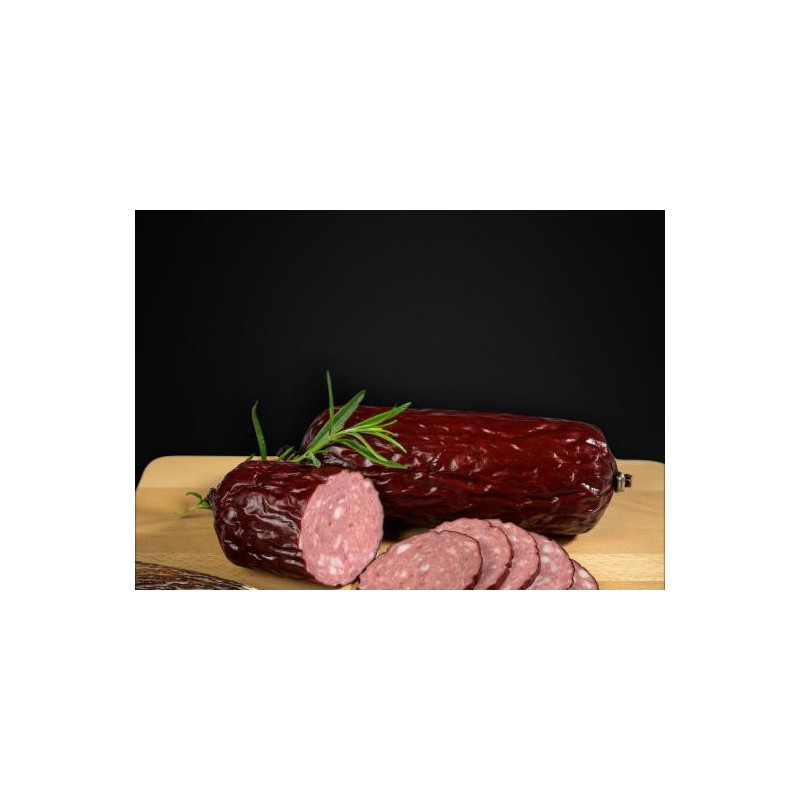 Kvalitní jelení zvěřina s přídavkem vepřového masa pro neodolatelnou šťavnatost. Použity jsou jen ty nejkvalitnější suroviny a přírodní vepřová střívka.