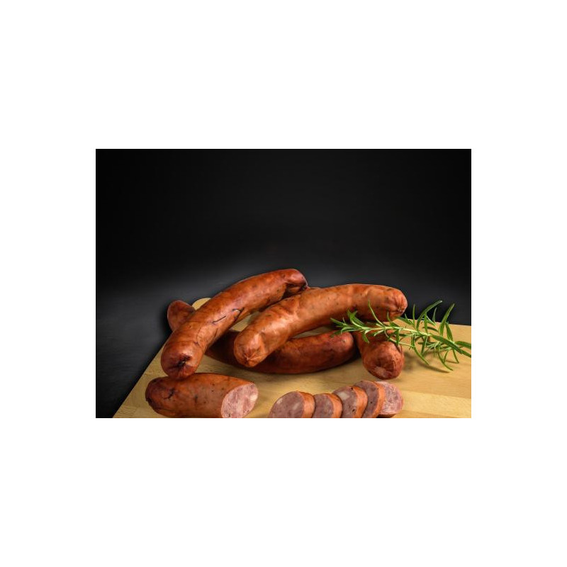 Kvalitní jelení zvěřina s přídavkem vepřového masa pro neodolatelnou šťavnatost. Použity jsou jen ty nejkvalitnější suroviny a přírodní vepřová střívka.